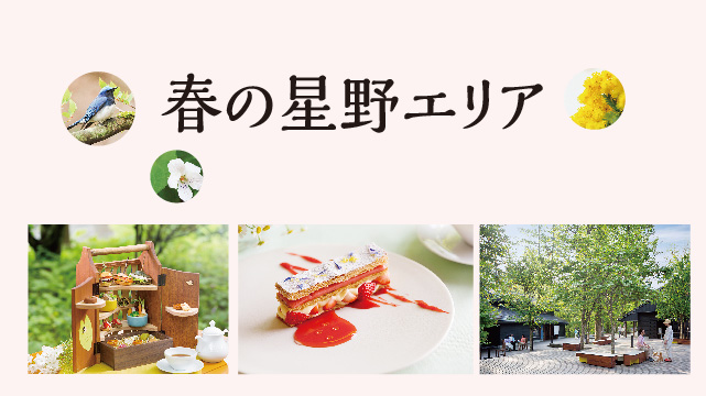 湯川のせせらぎと鳥のさえずりが心地よい、星野エリアの春。 豊かな自然につつまれて、温泉やレストラン、カフェで、ゆったりとした時間を楽しんで。