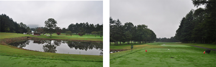 | ゆーMAN隊員:「第2回軽井沢新聞杯チャリティーゴルフコンペ、スタート!」 伊藤隊員 :「説明しよう!場所は、軽井沢72ゴルフ 西・ゴールドコース。 競技方法は、18ホールストロークプレー新ペリア方式 で行われます。」 EVAH隊員:「ちなみに、今日は曇りで午後からは雨の予想です。」 ワッシー隊員:「ゲッ・・・・。ってか、伊藤隊員って誰っすか?」 |