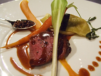 | ◆信州小山牛霜降り肉のポワレ エルミタージュ赤ワインのソース +◆エルミタージュ レルミト 2002 ◆信州遠山郷産鹿背肉のロティ セップ茸のプラリネを纏って 赤ビーツのピュレとラヴィオリと共に +◆シャトーピションロングヴィルバロン 2001 |