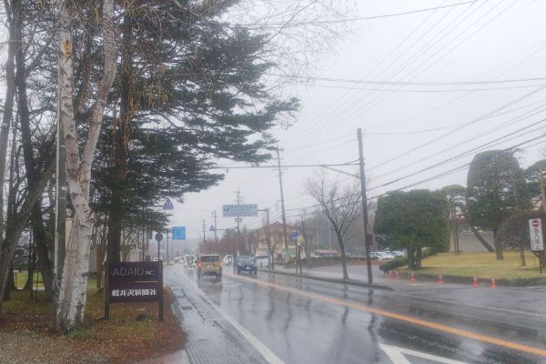 霧がかかり雨の降る軽井沢。朝9時の気温は9℃で、明け方より気温が下がっています。今日は東北東の風が
