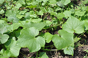 アレチウリ 北米原産のウリ科の一年草。葉や茎に白毛やトゲがあり、9月下旬に熟す果実にも硬いトゲが