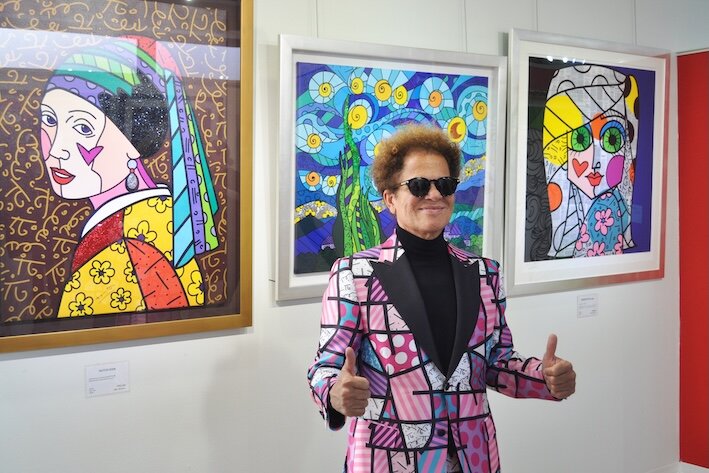 ブリットさんはブラジル出身で、米国マイアミを拠点に活動。鮮やかな色彩と大胆なパターンの作品で知られ、FIFAワールド杯やオリンピックの公式アーティストを務めたことも。