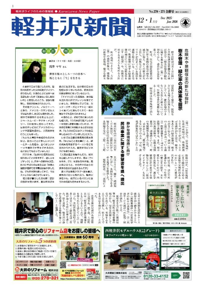 軽井沢新聞 スペシャル No.270・271(2025年12月)議会ウォッチャー連載町議会12月会議が4日から再開した。21議案他が提出され、18日の閉会をもって本年の通年議会は終わ
