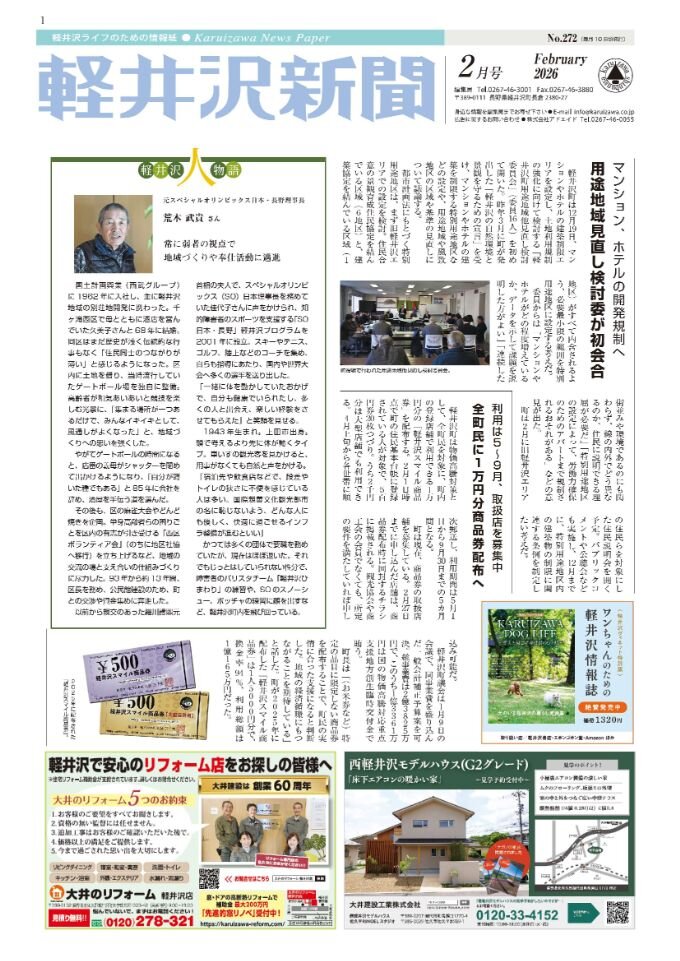 ニュース No.270・271(2025年12月)軽井沢新聞12・1月合併号の紙面でお伝えした本記事について、面積の表記に誤りがありました。正しい内