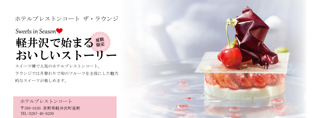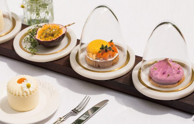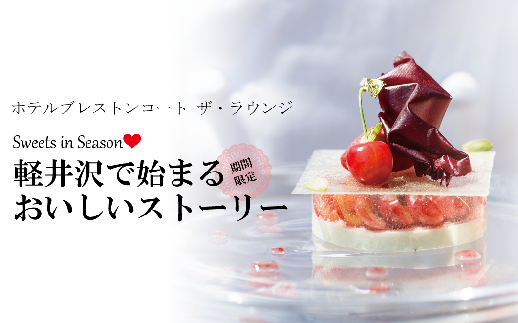 『ザ・ラウンジ』の目の前に広がるのは、季節感あふれる自然の風景。「季節のデザートコース」では、その豊かな自然の恵みを三品のコース仕立てで、楽しめます。パティシエの想いが込められた新しいデザートコースには美味しい驚きがたくさん詰まっています。