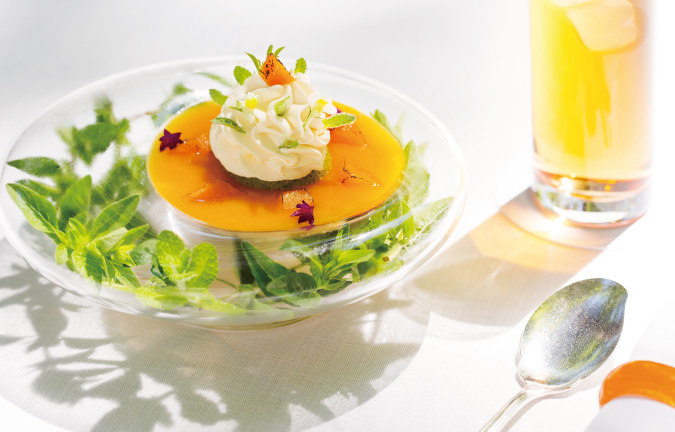 二品目のメインのひと皿は、軽井沢の夏の涼しさを表現した『ブリーズ・ドゥ・エルブ』(ハーブのそよ風)。