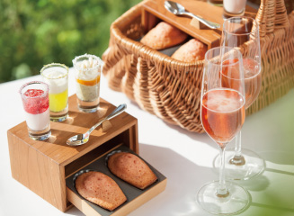 一品目は初夏の爽やかな軽井沢のピクニックをイメージし、カラフルなマドレーヌやヴェリンヌをゆっくり楽しむスタイル。