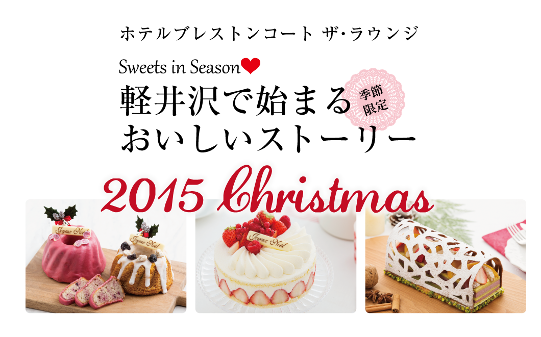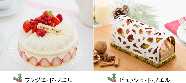 ホテルブレストンコートでは、苺たっぷり「フレジエ・ド・ノエル」と彩り華やかな「ビッシュ・ド・ノエル」をご用意いたしました。