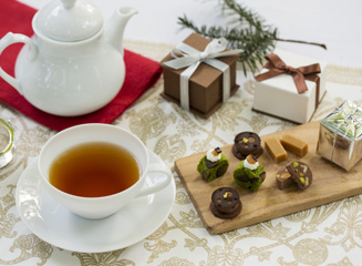 クリスマス仕様のアフタヌーンティは、パティシエのこわりを詰め込んだ3皿仕立てで。