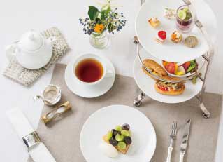 アフタヌーンティは、パティシエのこだわりを詰め込んだ3皿仕立てで。