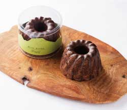 カカオのクグロフにジューシーなセミドライの巨峰をあわせ、ショコラでコーティング。1,612円