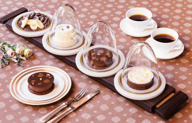 期間限定で開催する「ショコラの庭」。ボンボンショコラやクグロフ、グラスデザート、焼菓子など、様々なショコラを華やかに盛り込んだ夢のショコラワゴンが登場。好きなショコラを好きなだけいただけます。パティシエが目の前で「ときめきパルフェ」も仕立てます。ハーブティや珈琲、紅茶とあわせて、ショコラを堪能してください。