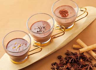 一品目は冷たい「ショコラ・ショー」&温かい「ショコラ・ショー」。温冷のショコラのドリンクが楽しめます。生姜を効かせたミルクを入れて。