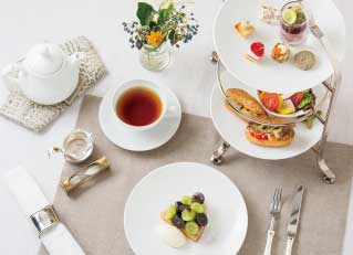 パティシエの拘りを詰め込んだ三段トレイのアフタヌーンティは、信州サーモンやソーセージを挟んだ、軽やかな食感のエクレアのサンドイッチとフルーツタルトに愛らしい小菓子も一緒に。ゆったりとした午後のひとときをお過ごしください。