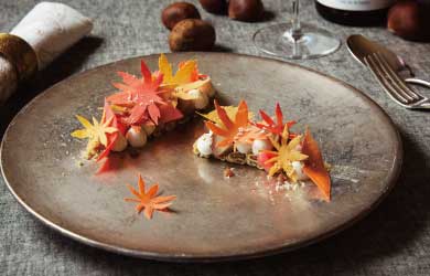 素材の美味しさをギュッと閉じこめた小さなガトー。秋の気配を感じる爽やかな味わいから始まり、森が紅やオレンジ色に染まる秋の頃にはほっくりとした味わい