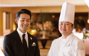 左/メインダイニング「ユカワタン」 ソムリエ 鈴木良隆