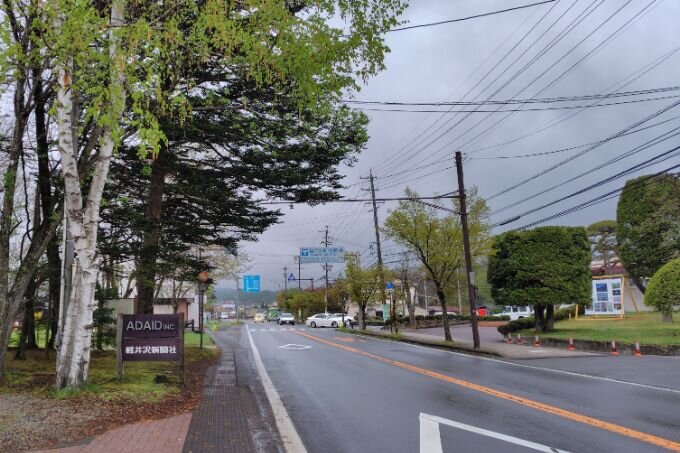 少し暗い曇り空の軽井沢。雨はほぼ止んでいます。朝9時の気温は12.9℃です。 きょうの軽井沢は雨
