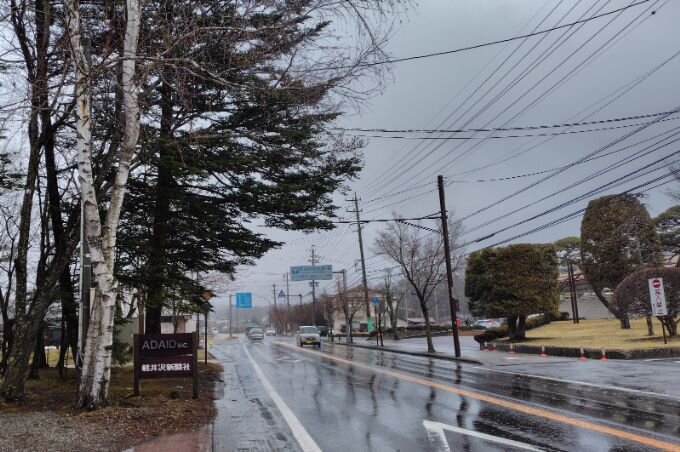 朝9時の気温は6.1℃。時折、雨がパラついています。 軽井沢は雨時々曇りで、昼過ぎと夜遅くは雨に