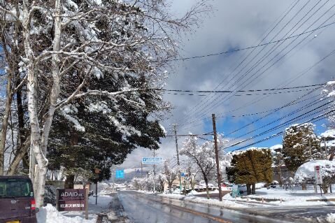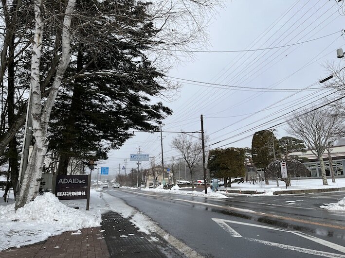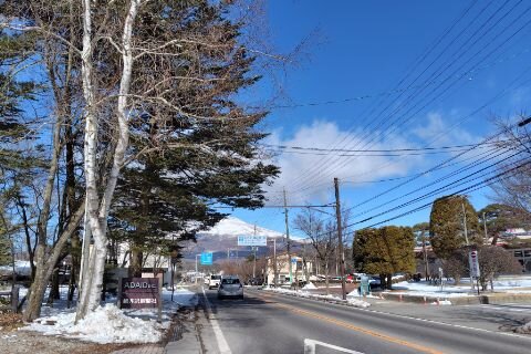 朝9時の気温は-1.7℃。青空に真っ白な雪景色が映える軽井沢の朝です。きょうは少し強い北西の風が吹