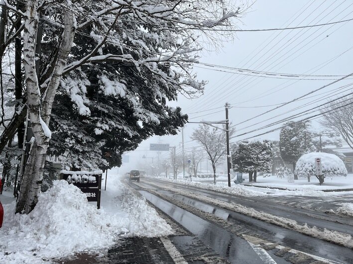 一晩中降り続いた雪は29cm積もりました。湿った重たい雪で雪かきが大変です。9時の気温は-1.7℃