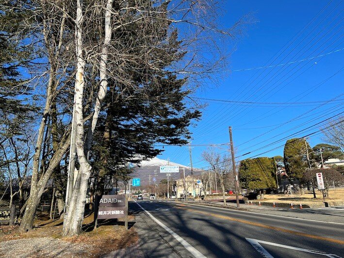 澄んだ青空が広がり、雪をまとった浅間山がくっきりと見えています。 1月5日の軽井沢は一日を通じ