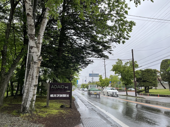 雨の軽井沢。木々の緑をつややかに濡らしています。朝9時の気温は14.2℃です。 軽井沢は一日を通じ