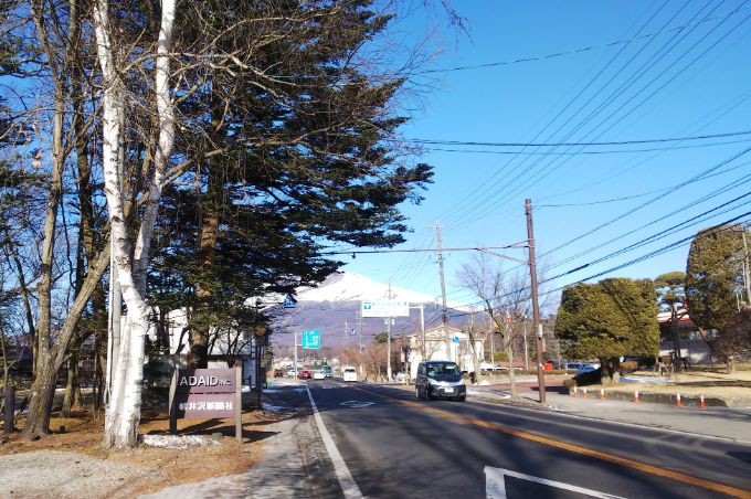 きれいな青空に映える真っ白な離山。寒い朝を迎えた軽井沢です。9時の気温は−6.4℃でした。 軽井沢