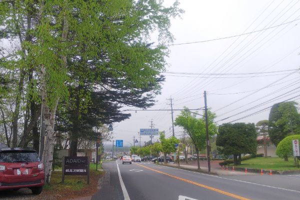 時折、霧雨の降る軽井沢。朝9時の気温は6.6℃です。厚い雲に覆われ、暖かな上着が欲しくなるくらい肌