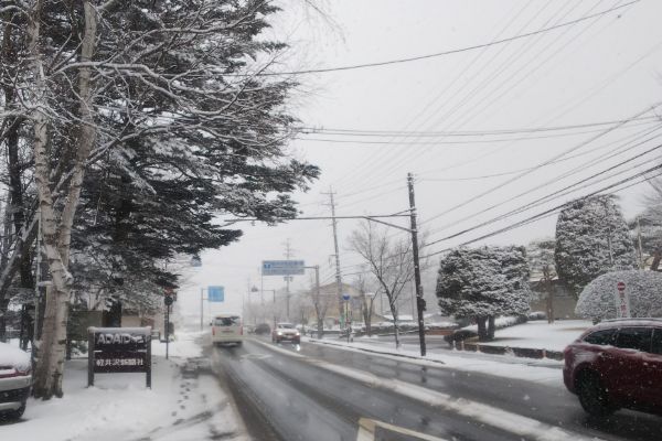 しんしんと雪の降る軽井沢。現在、積雪は3㎝を記録しています。朝9時の気温は-0.6℃でした。 関東