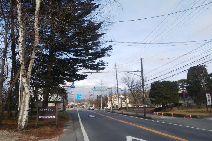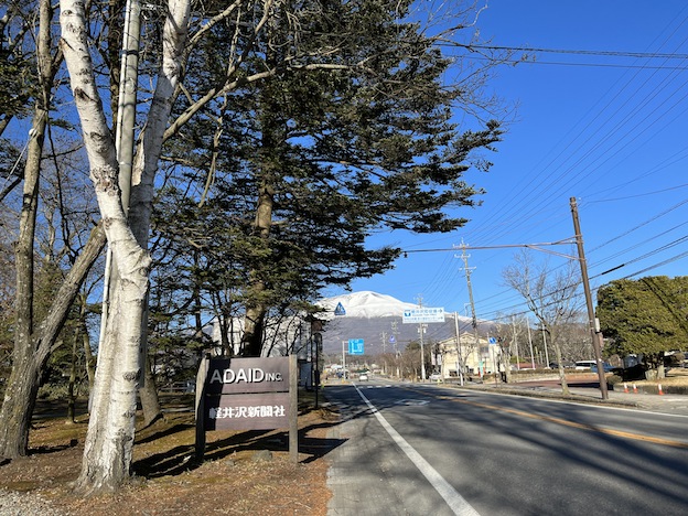 9時になっても、軽井沢の気温は1.0℃と低いままです。青空が広がり、雪をかぶった浅間山がくっきりと