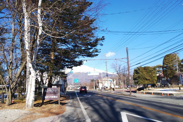 雪の浅間山が映える青空が広がっています。キーンと冷たい空気に包まれた軽井沢、朝9時の気温は‐5.6
