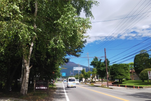 雲の多い朝の軽井沢。雲間には綺麗な青空が覗いています。朝9時の気温は26℃と少し高いですが、爽やか