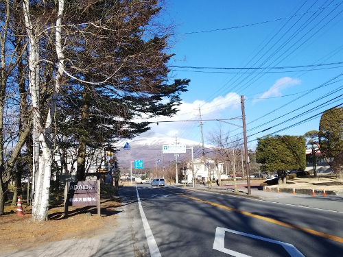 雪のかかった浅間山が青空によく映えています。朝9時の気温は0.1℃でした。今日も昼頃から、少し強い