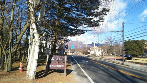 今朝の軽井沢はすがすがしい青空が広がっています。日陰では一昨日降った雪が凍っている箇所がありました
