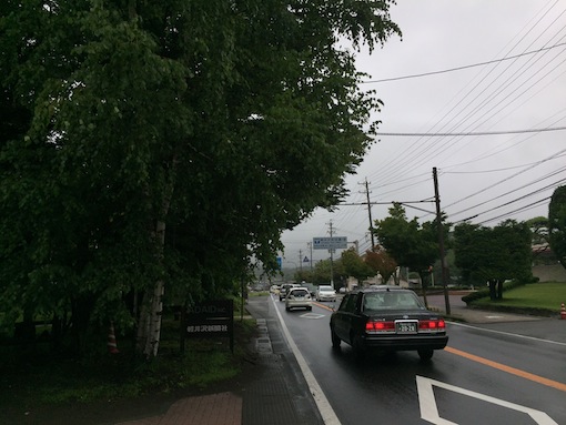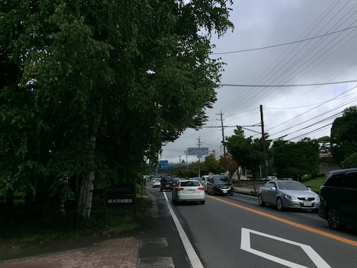 グレーの雲が広がり、今にも雨が降り出しそうです。会社前は9時前から既に、軽井沢駅方面へ向かうクルマ