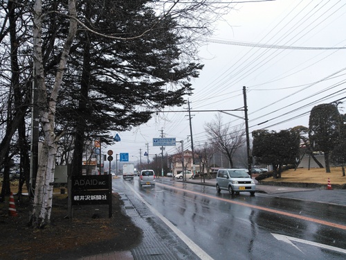 細かな雪の降る朝の軽井沢です。傘をささないと、すぐに濡れてしまいます。朝9時の気温は0.5℃でした