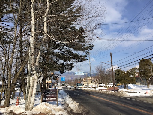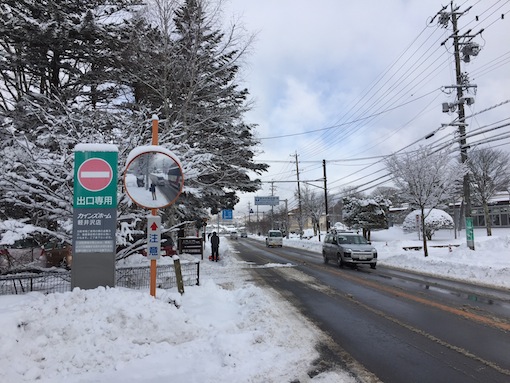 軽井沢は昨晩から降り続けた雪が35cm、積もりました。雪は既に止み除雪作業が進んでいますが、道幅が