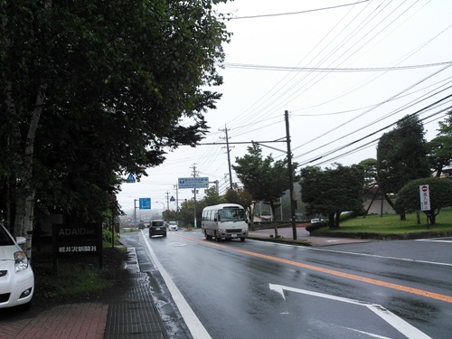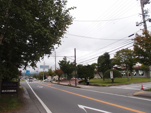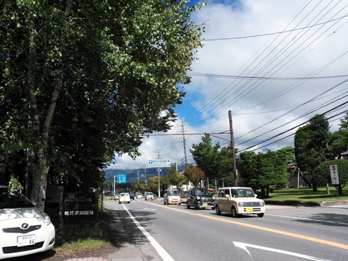 浅間山は雲に隠れていますが、軽井沢は晴れて、日が差しています。朝の気温は17.5℃と低くめで、心地