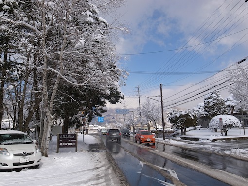 雪は止んで、晴れ間が広がった軽井沢。朝9時の気温は1℃と低めですが、温かな日差しが降り注いでいます