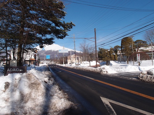 今朝も空気はぴりりと冷たいですが、青空が広がっています。日当たりの良い場所では、凍った雪が少し解け