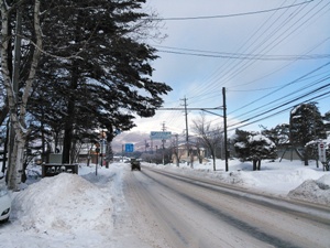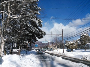 雲が多いものの、おおむね晴れの軽井沢です。離山は真っ白で、国道沿いの街路樹も、細い枝が白く凍ってい