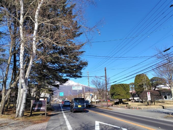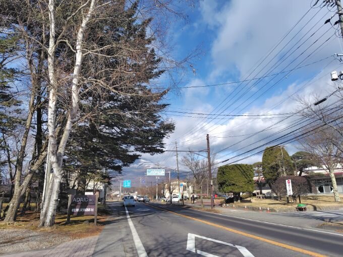あさ9時の気温は-3.1℃です。少し雲がかかっていますが、浅間山は裾野まで、離山は中腹まで真っ白に