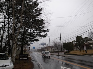 厚い雲と霧に覆われた朝の軽井沢。朝9時の気温は5.6度と上がっていますが、外の空気は冷たいです。