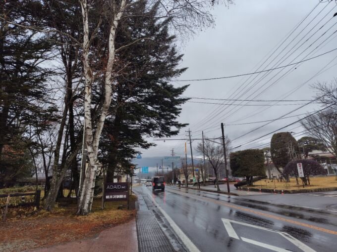 あさ9時の気温は2.6℃。空全体が薄暗い雲に覆われ、小雨が降っています。 軽井沢は昼過ぎまで雨で