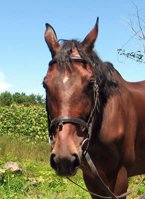 非常におとなしく大きなゆったりした歩様の馬場馬。やさしい人が大好きです。