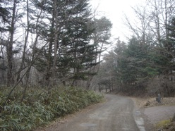 離山の登山口までは車では行けません。左の写真の看板から30分ほど別荘地内の舗装された急坂を登るとたどり着きます。