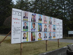 今日は町議会議員選挙の告示日です。朝から早速ポスターが貼られ始めました。、選挙カーも今日から早速走り始めます。投票日は22日(日)ですが、それまで賑やかな日が続くことでしょう。