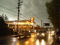 この時間とは思えないほどの暗さに路上の車もライトをつけ始め、この後急にものすごい勢いで雨が降り出しました。