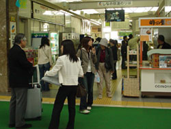 新幹線やしなの鉄道改札口はとても賑やか。先週末はかなりの人の行き来がありましたが明日からはもっと賑わうことでしょう。