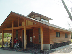 立派なログハウスが・・・と思ったら、こちらはおトイレ。車椅子の方でも安心してお使いいただけます。